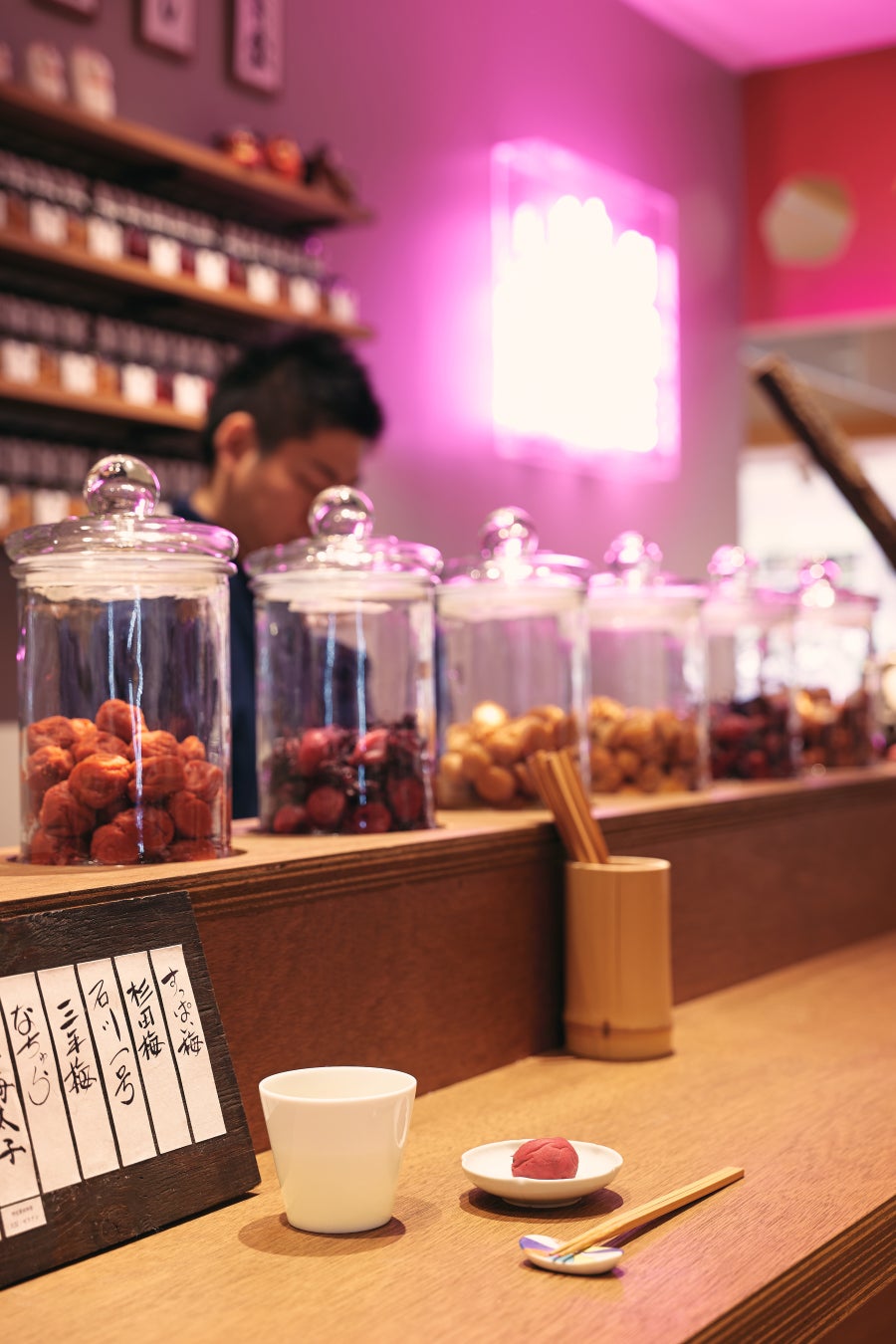 立ち喰い梅干し屋は2020年3月、東京スカイツリーの麓にある商業施設「東京ソラマチ」にオープンした、「梅干しが主役」の専門店です。全国各地から厳選した16種類の梅干したちを立ち喰いで楽しむことができます。