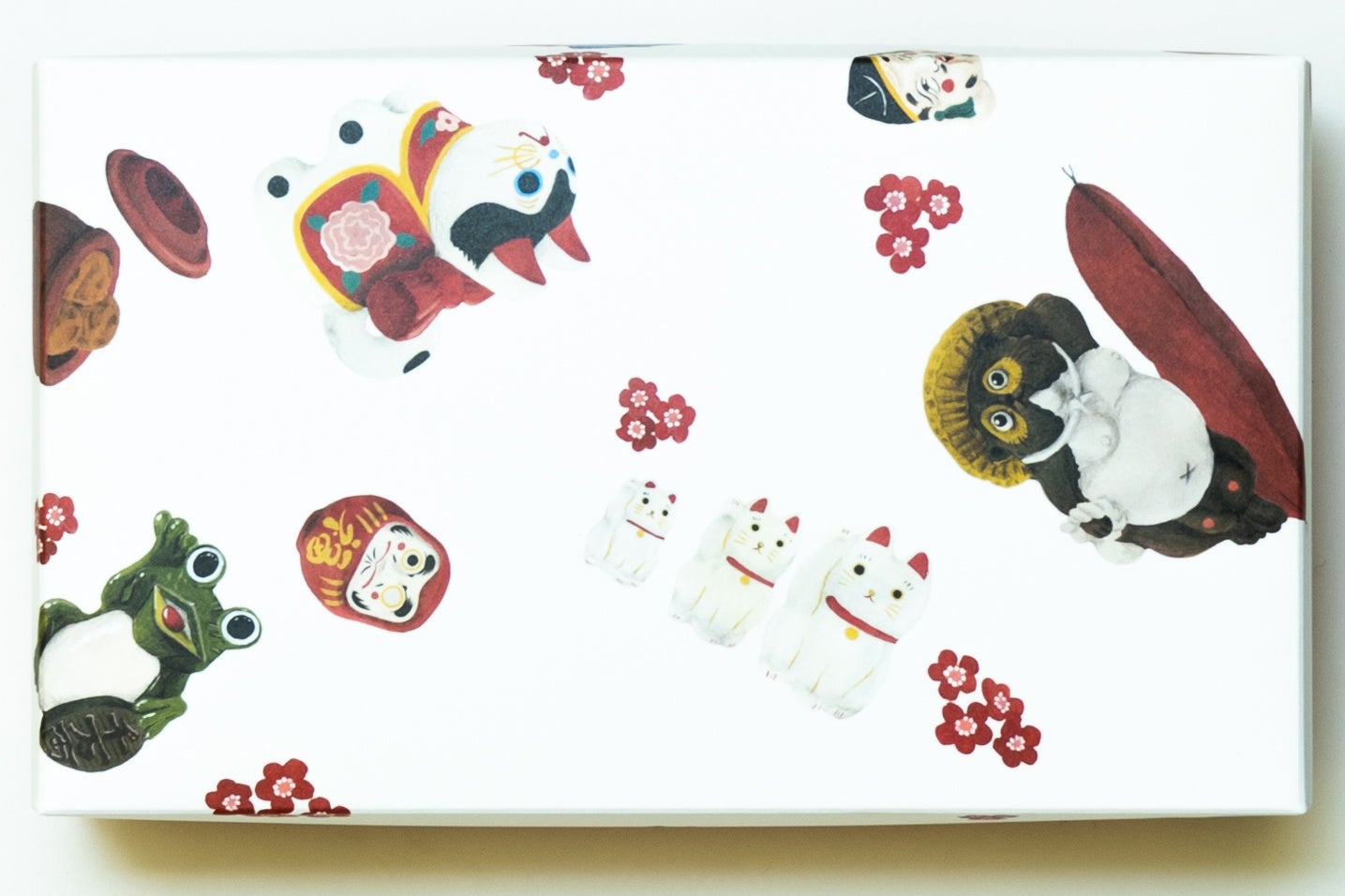 可愛くて縁起の良さそうなイラストは外山夏緒さん。店内にある置物たちを描いてくださいました。ぜひ、ご利用ください。