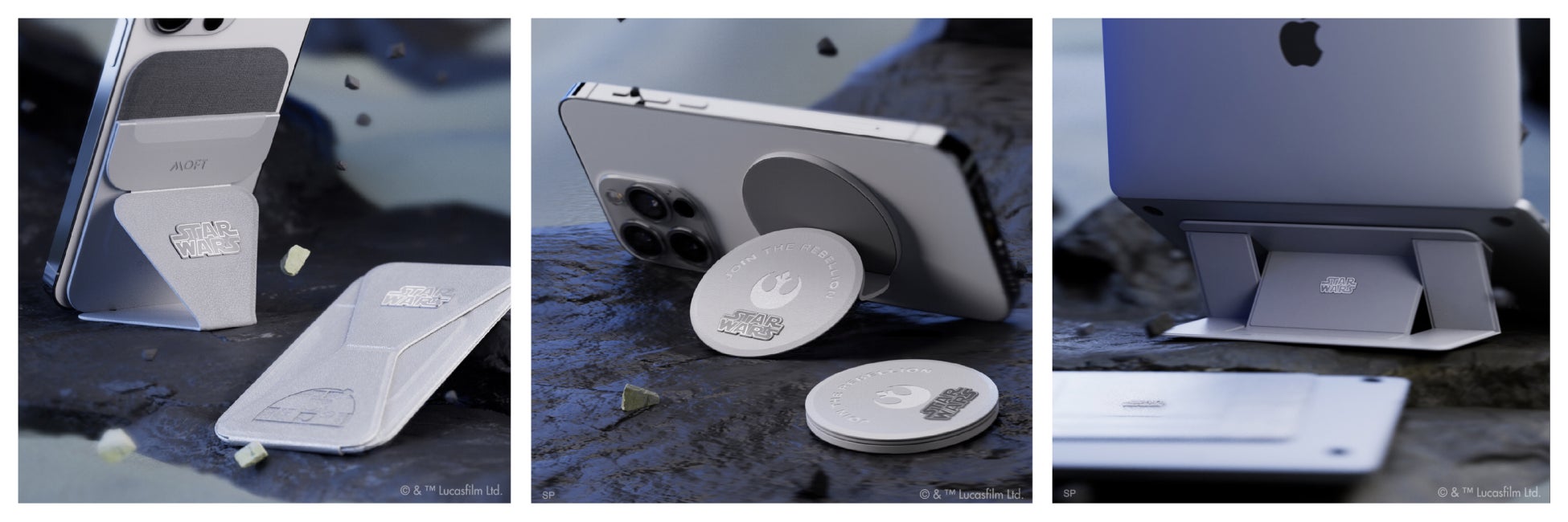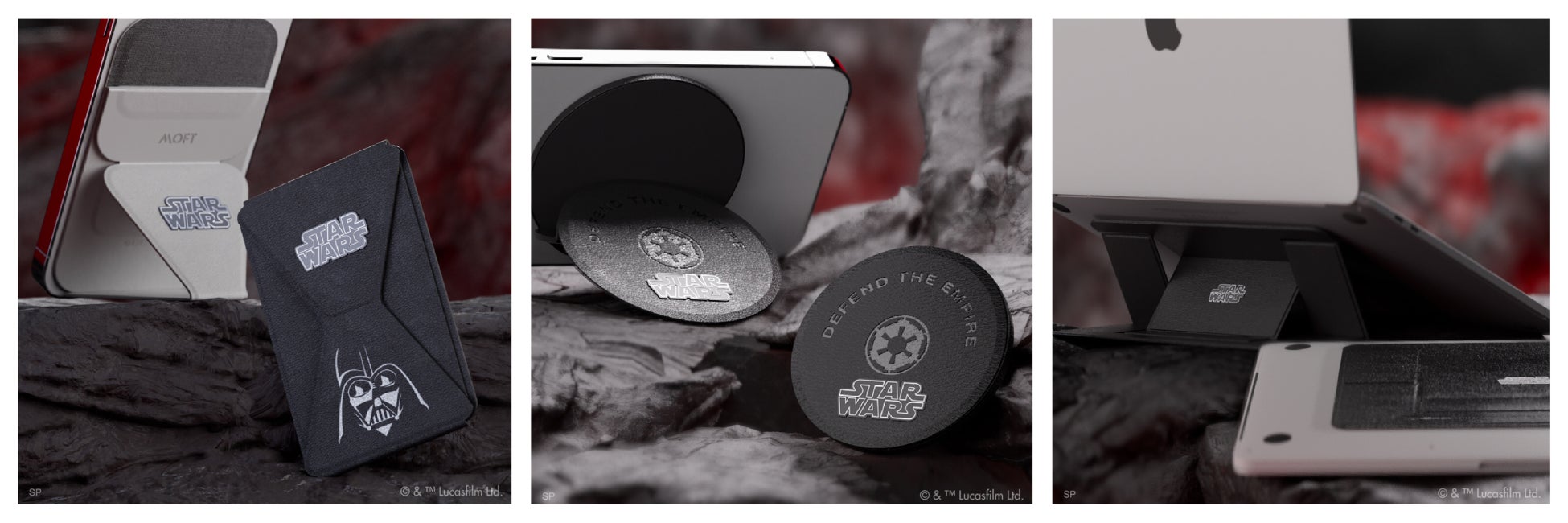 シリーズの中でも特に人気の高いMOFT X スマホスタンド・MOFT O スマホスタンド・MOFT ノートPC スタンド をひとつにまとめた、「スター・ウォーズ」デザインの日本限定エディションとなります。