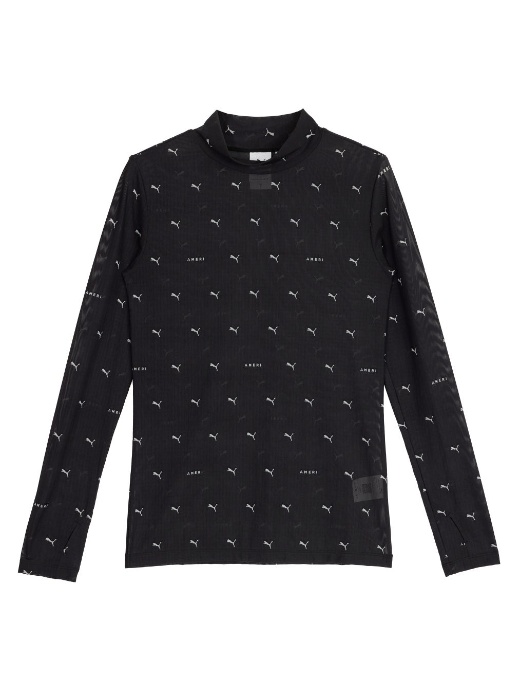 PUMA CATと AMERIロゴを組み合わせた総柄をプリントしたスキントップ。 伸縮性のあるメッシュ素材を使用し、着心地とデザイン性を兼ね備えた一着。 「 PUMA × AMERI COLLAB BUSTIER TOP 」とレイヤードするスタイリングもおすすめです。