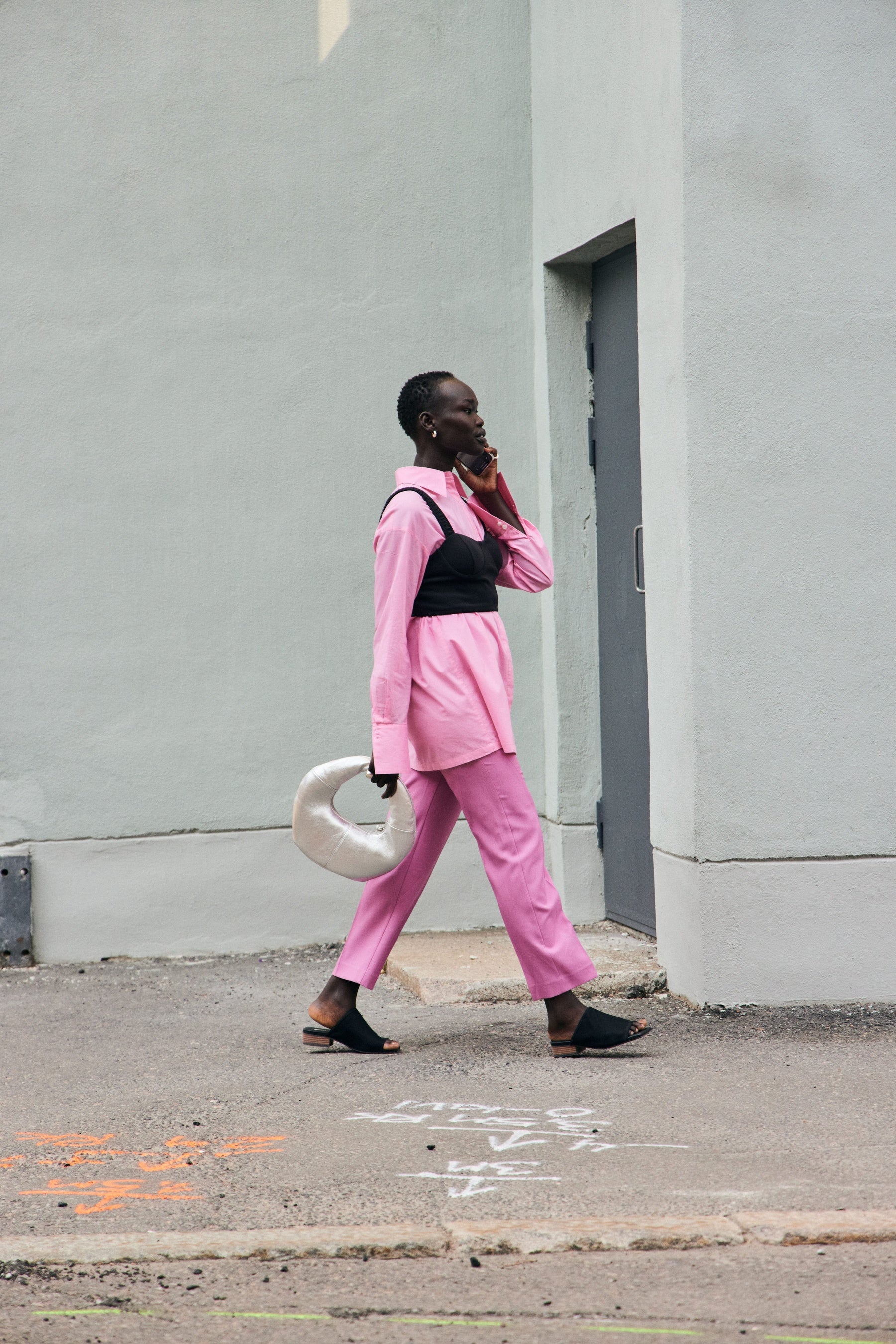 用し、ミニマムなデザインに仕上げ ました。シャツやパンプス