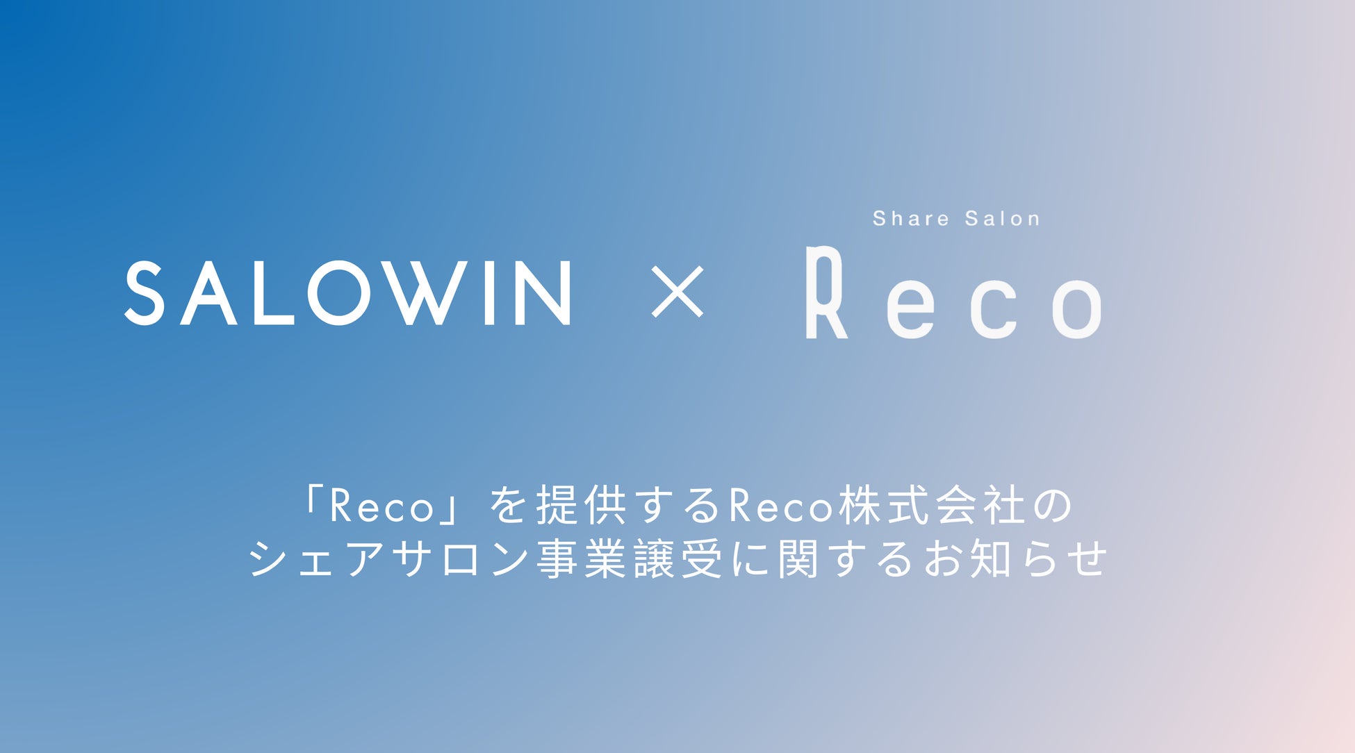 サロウィン株式会社、Reco株式会社のシェアサロン事業譲受に関するお知らせ