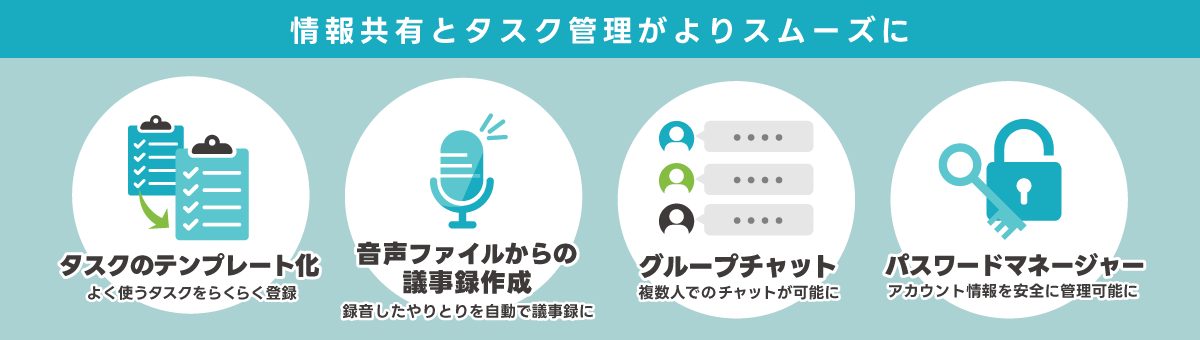 今回のアップデートでは、日頃よりお客様からご要望の多かった機能を中心に改善・拡充を実施しました。利用者の多いタスク管理をよりスムーズにする機能や、コミュニケーション強化などを実現することで、より実務に即したツールへと進化しています。