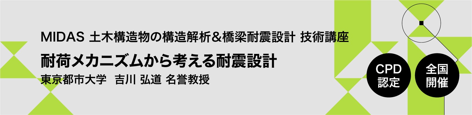 株式会社マイダスアイティジャパン(東京都千代田区、代表取締役社長:金 宰模、以下マイダスアイティ)は、CIVIL NX のリリースを記念し、土木構造物の構造解析&橋梁耐震設計に関する「MIDAS 土木分野 技術講座」およびCIVIL NXの体験セミナーを、全国8都市(東京・横浜・大阪・名古屋・福岡・広島・札幌・仙台)で開催いたします。