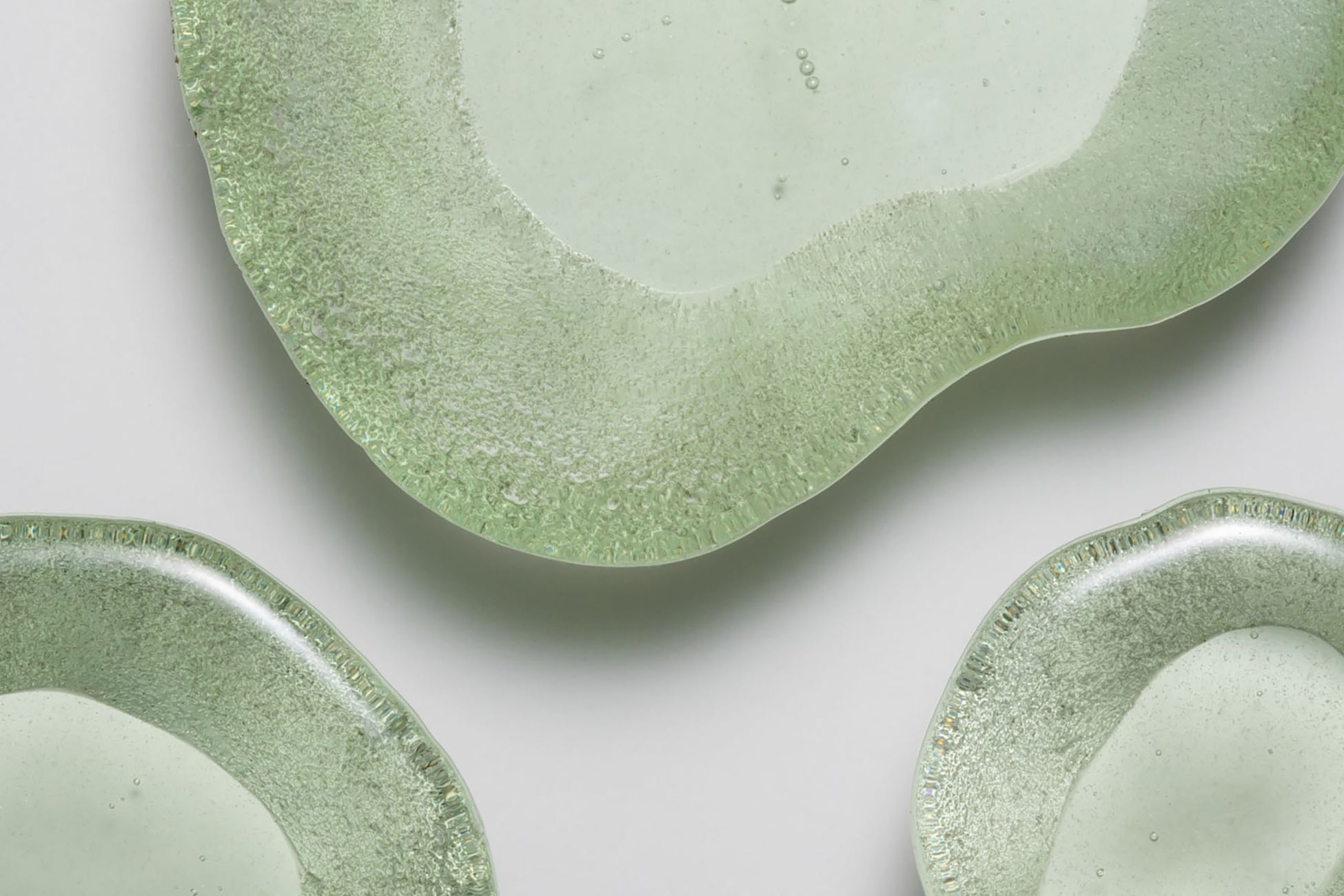 series 「sea」は、STUDIO RELIGHTの活動の魅力を、ambiがシリーズ作品として具現化する試みです。STUDIO RELIGHTの母体株式会社サワヤで適正処理された廃蛍光灯リサイクルガラスを材料に用い、リサイクルガラス特有の「色」や「気泡」を活かすために鋳造による塊形状をベースにガラスを成形しました。それぞれの作品ごとにシリーズタイトルである「sea」の様々なシーンを切取り、表現しました。