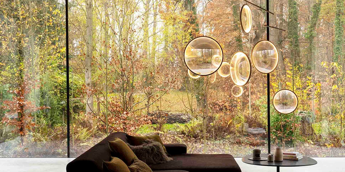 沖津雄司がデザインし、フランスの照明ブランドDCW éditions PARIS により製品化された照明作品「FOCUS」は、2018年のミラノサローネで、また国内では同年のDESIGNART TOKYO にAXISにて初公開され、モビール状に吊った複数の平らなレンズにLED照明を組み合わせたインテリアオブジェとして発表されました。その場の環境を織りなす 光・空気・風景の各要素に改めて焦点を当て再構築することにより、環境の変化に呼応した新たな光景を絶えず空間に作りだします。今回のコラボレーションにより、より洗練されコンセプトが更に際立つプロダクトを実現しました。