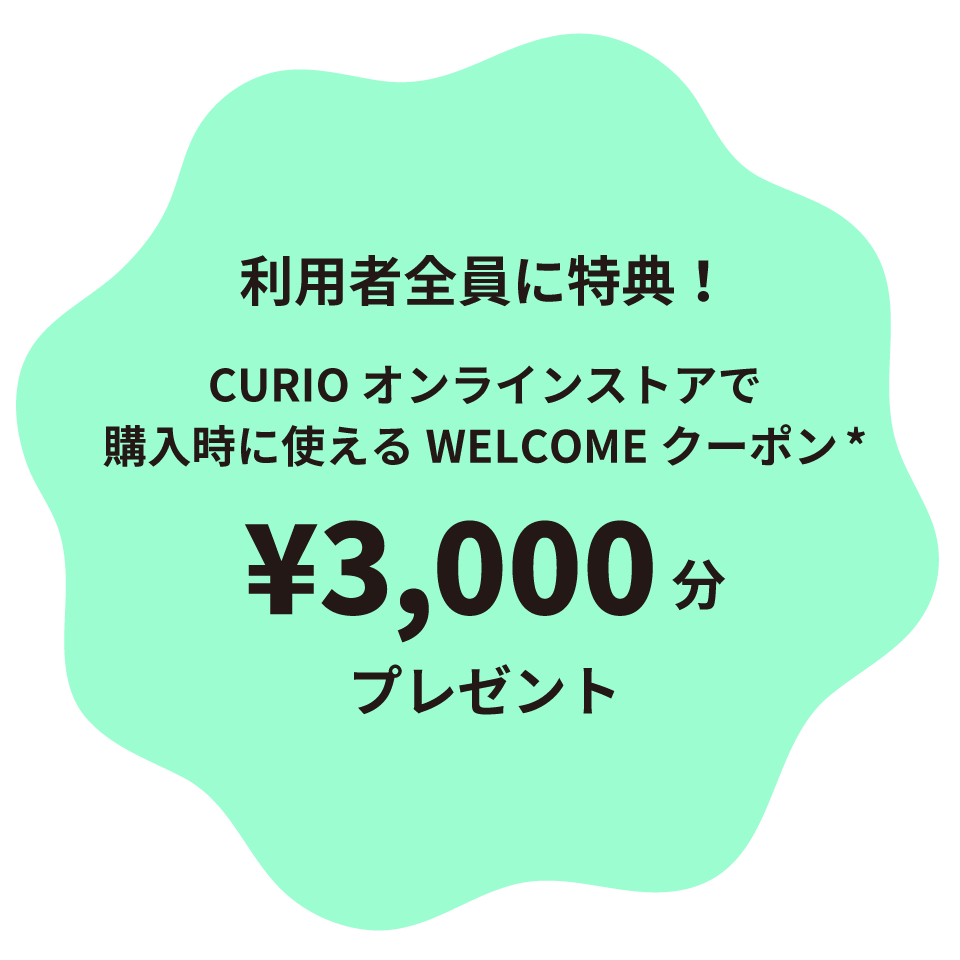 本サービスをご利用いただいた方全員に、CURIOオンラインストアでの本体購入時にご利用いただける、返却時の送料相当の「WELCOMEクーポン¥3,000分*」をプレゼントいたします。
