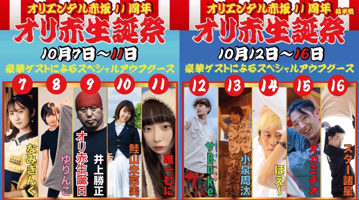全国にサウナリゾートオリエンタルを展開する株式会社センチュリオンインターナショナル(本社:東京都台東区上野)は、「サウナリゾートオリエンタル赤坂」の開業11周年を記念して「オリ赤生誕祭」を開催いたします。