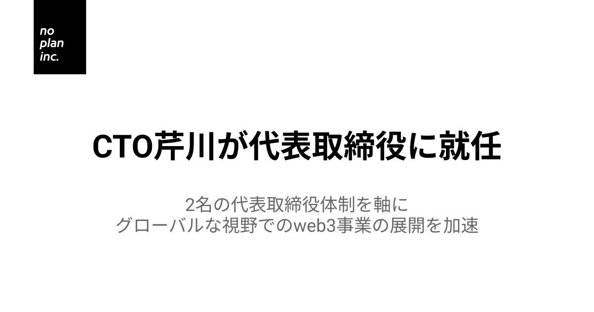 新たにCTO芹川が代表取締役に就任、2名の代表取締役体制を軸にグローバルな視野でのweb3事業の展開を加速