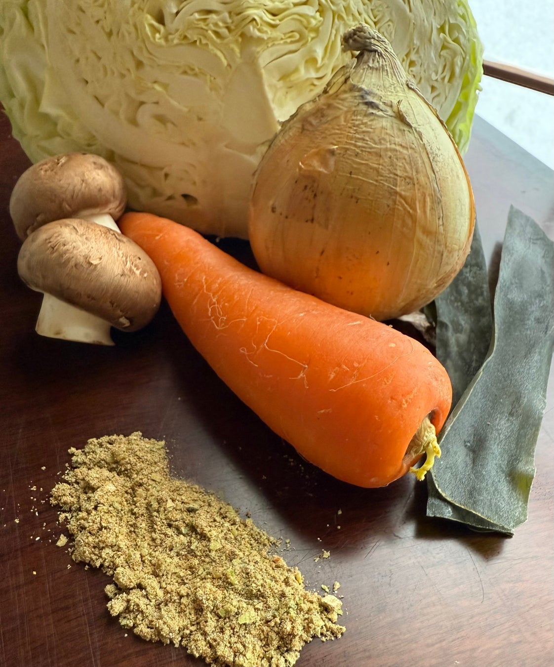 販売は1月1日より開始。玉ねぎ、キャベツ、にんじん、昆布(粉末)、マッシュルーム(粉末)が入ったこだわりの野菜を合わせ作っただしパック。