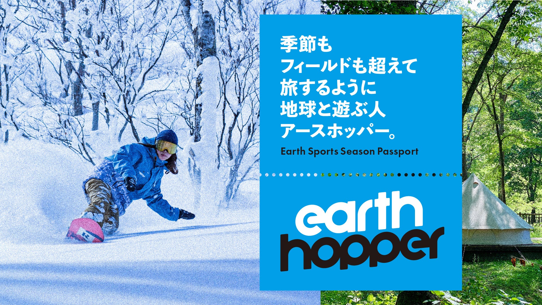 「アースホッパー」は、日本全国50箇所の人気スキー場、およびMTBやウェイクサーフィンなどのアーススポーツ施設でオールシーズンで使える定額パスです。1つの施設あたり2回まで利用でき、ウィンターシーズンにはお好みの場所や天気・雪質に合わせて、スキー場をホッピングすることが可能です。またレンタル可能なスキー場では、高品質なスキーまたはスノーボード用品をレンタルすることもでき、手ぶらでアースホッピングが楽しめます。