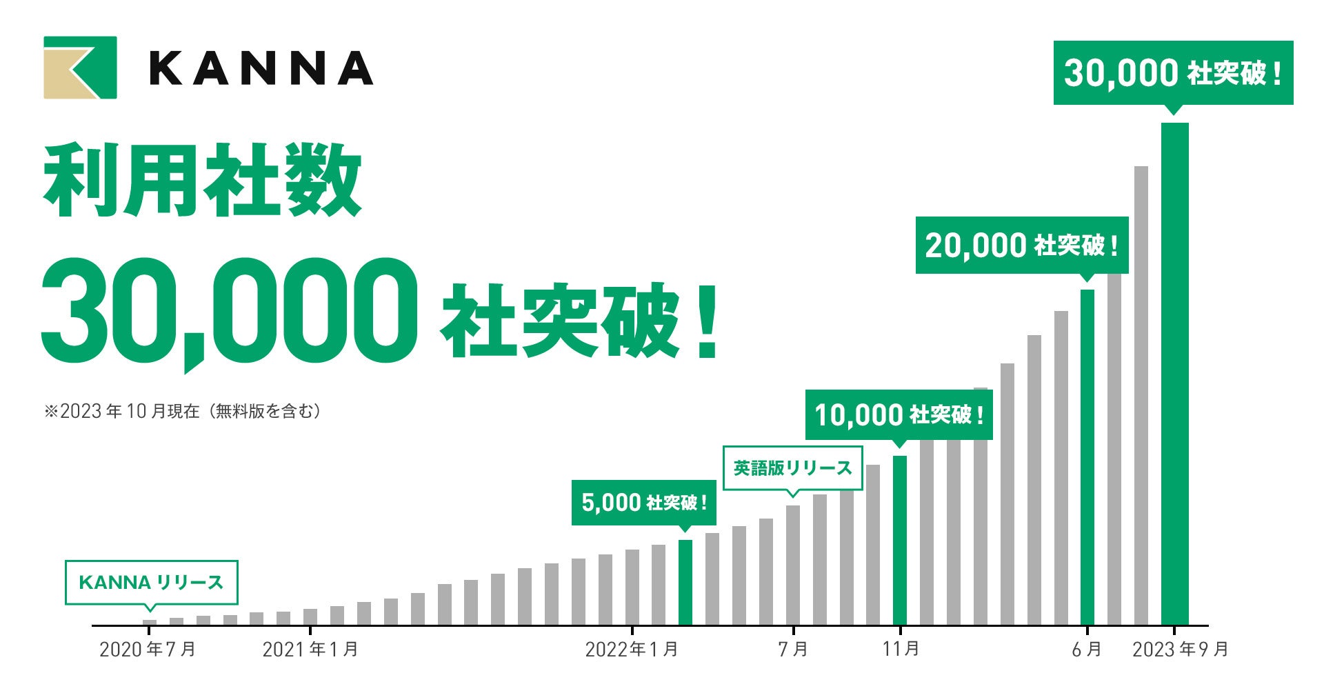2020年7月にサービス提供を開始、2022年1月に5,000社、同年11月に10,000社、今年6月に20,000社を突破しました。