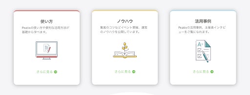 各機能の操作方法を解説するヘルプセンターに比べ、Peatix Universityでは、イベント集客のコツや利用シーンに合わせたPeatixの活用方法など、様々なコンテンツを提供しております。各種コンテンツは、テキストだけでなく、一部動画でも提供いたします。