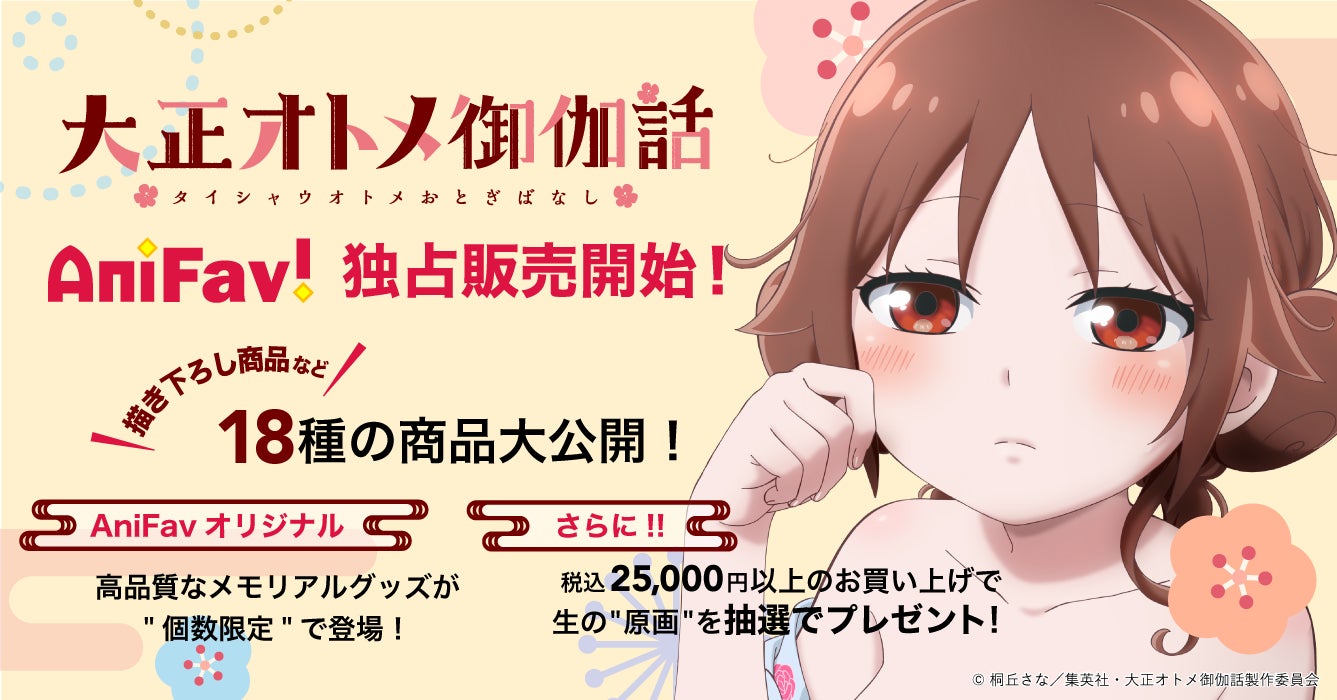 アニメグッズストアAniFav(アニファボ)では、TVアニメ『大正オトメ御伽話』の描き下ろしグッズを中心に全18種84商品をAniFav独占販売を開始いたしました。
