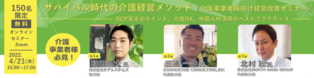 サバイバル時代の介護経営メソッド『介護事業者様向け経営改善セミナー』~BCP策定のポイント、介護DX、外国人材活用のベストプラクティス~
