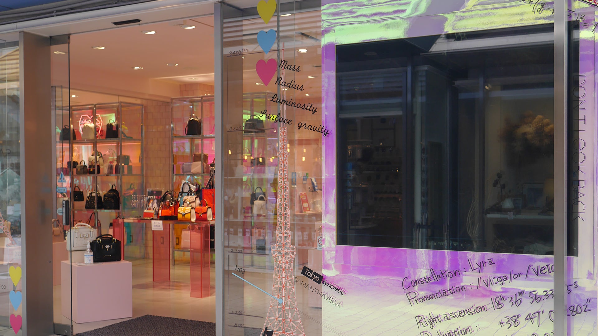 東京都心の好立地に店舗を有するSAMANTHAVEGAでは店頭サイネージを活用しオンラインイベントへ提供。LIVE配信プラットフォームにて株式会社DELTA-Vが主催するオンラインイベントにより制作された映像を掲載。居住する地域などの”場所”に囚われずオンラインで活躍する配信者やタレント・モデルのPRの場を創出しております。2.0次元のキャラクターリソースだけではなく3.0次元の実在性を持つタレントにおいても、映像を制作させて頂きまして店頭サイネージにてアプローチの機会を増やすことが可能です。