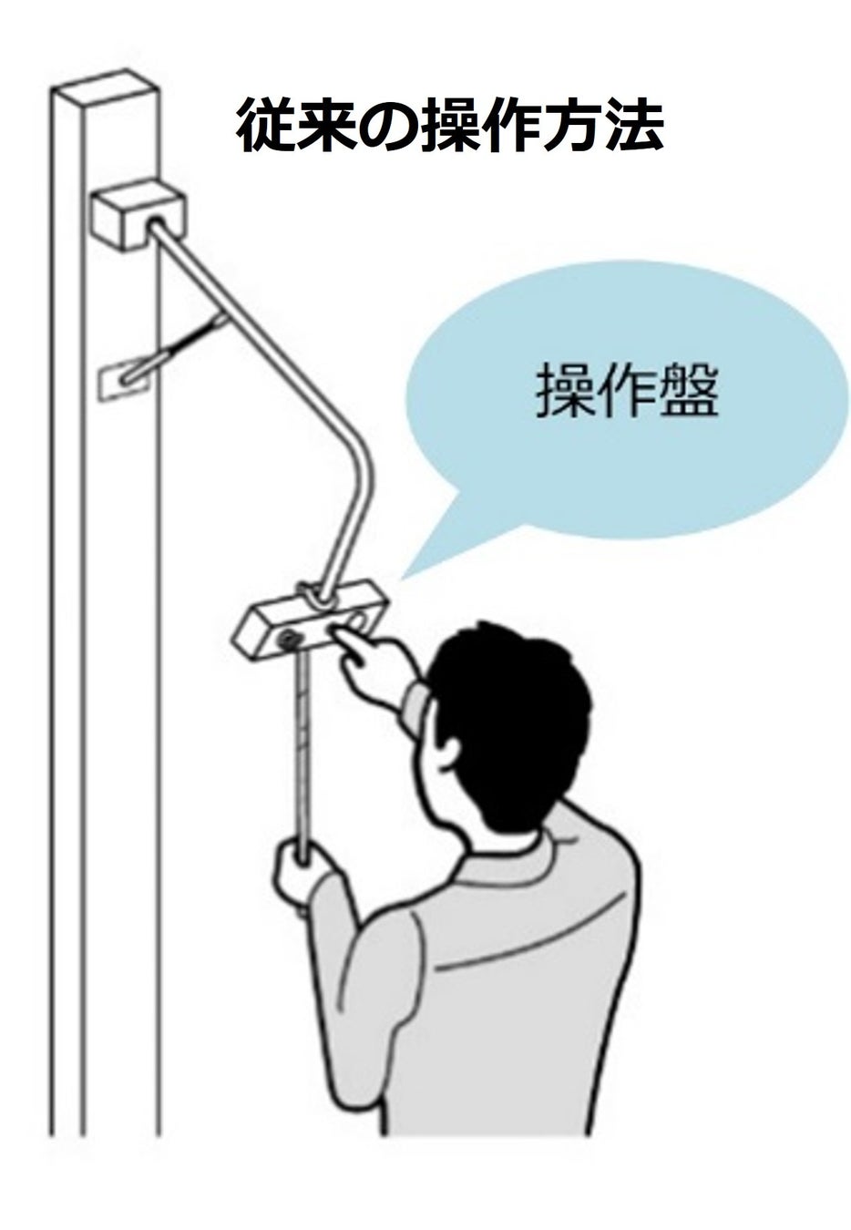 装置の操作盤は、車に干渉しない高い位置へ設置されており、届かない場合には、手で位置を下げる必要があります。その際に両手がふさがるため、雨天時に傘を差していたり、手荷物が多い場面において、使いづらいといった声がありました。