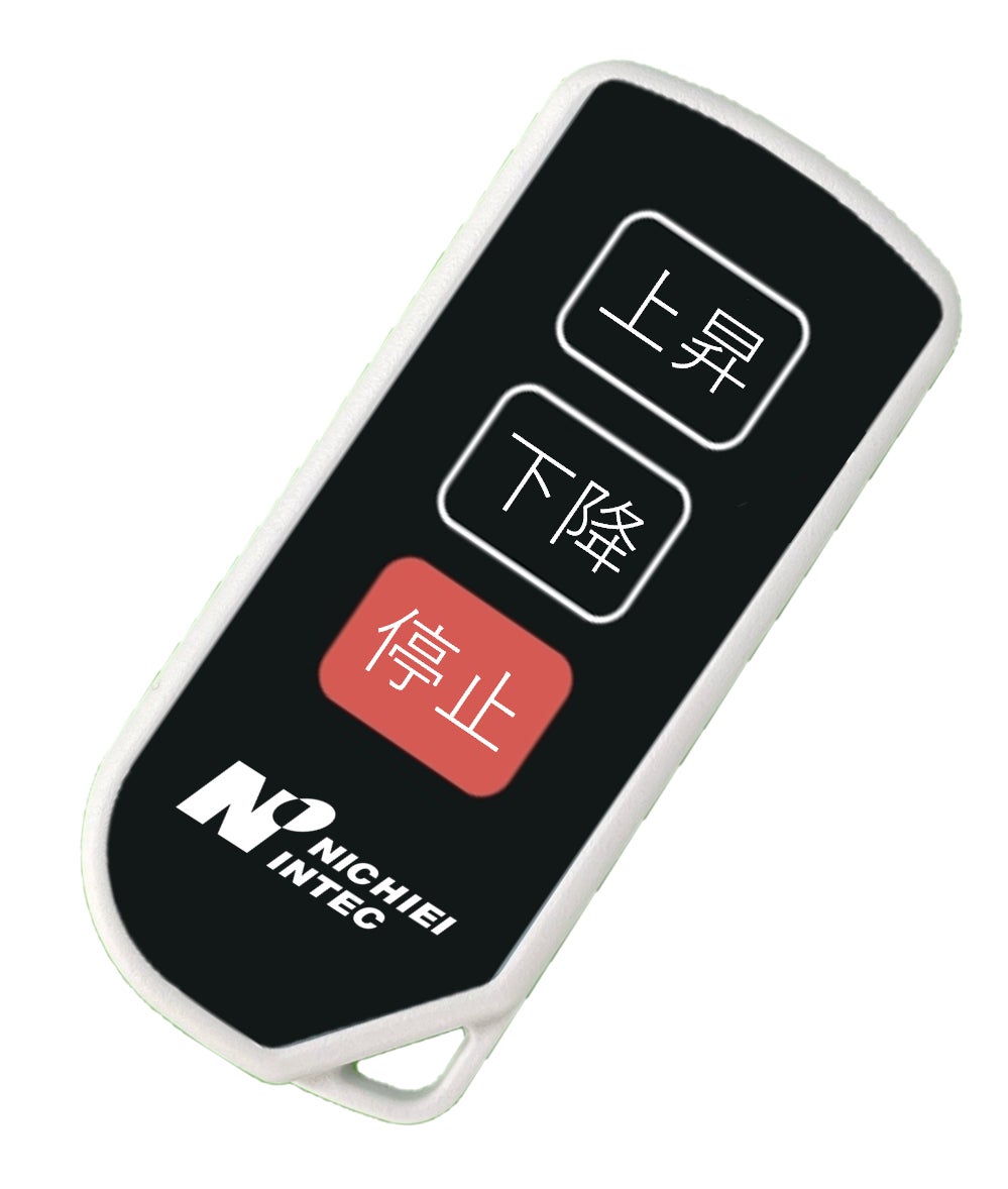 リモコンには操作範囲を設定しており、操作盤から2メートルの範囲内でのみ操作が可能です。また、「上昇」「下降」は2回ボタンを押すと動作する仕様となり、誤作動を防止します。