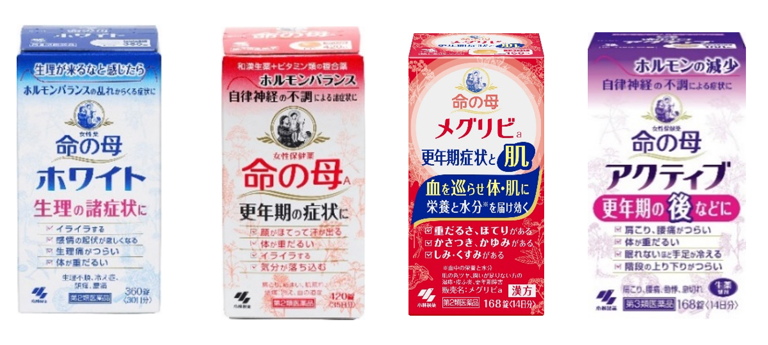 「命の母メグリビ」、更年期後にも続く不調に「命の母アクティブ」など、ライフステージにあわせて選べるラインナップを展開しています。