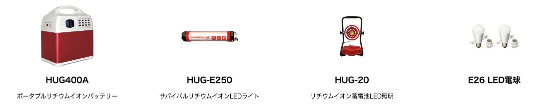 公共施設・病院・ 学校・マンション管理室・オフィス等、非常時に電力と灯りを確保するために備えておきたい1台。復旧までの時間を十分にしのげる電力と灯りを確保できる。セットのリチウムイオン蓄電池「HUG-400A」は12のUSB 出力ポート数と2個口のAC出力コンセントを備え、一度に複数の機器を充電できる。ライフラインを維持するのに十分な390Whながら、小型・軽量(5.3 キロ)とポータビリティーに優れデザインもスタイリッシュ。同梱の太陽光パネルを使用すれば屋外で何度でも充電が可能です。 そのほか、充電可能なLEDハンディライト、ACアダプタ付き LED 電球、 防水タイプの蓄電型 LED 照明がセットになっています。