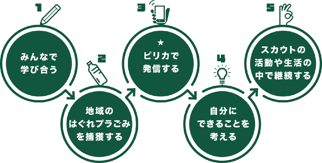 ボーイスカウト日本連盟は、長年実施してきた清掃活動「スカウトの日」の拡大版として「プラごみバスターズ大作戦」を実施し、この活動に賛同いただく地域の皆さまと一緒に楽しみながらごみの回収に取り組み、環境保全に貢献してまいります。