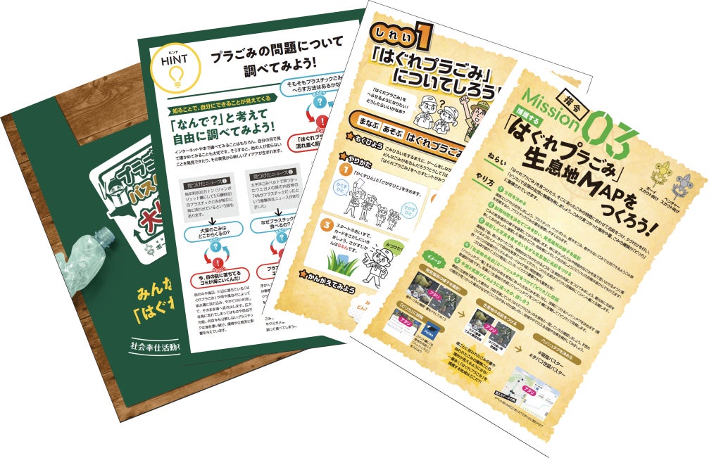 世界共通の課題である「プラスチックごみ」についての学びや家族やグループで楽しむゲームをまとめた「ミッションノート」を作成しました。小学生や中学生など、それぞれの年代に合わせて用意した指令・ミッションを親子で挑戦してみてください。
