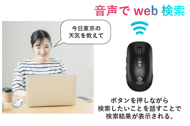 あなたの作業負担をとことん軽減できるよう、左側のボタンを押して話しかけるだけで検索が可能。