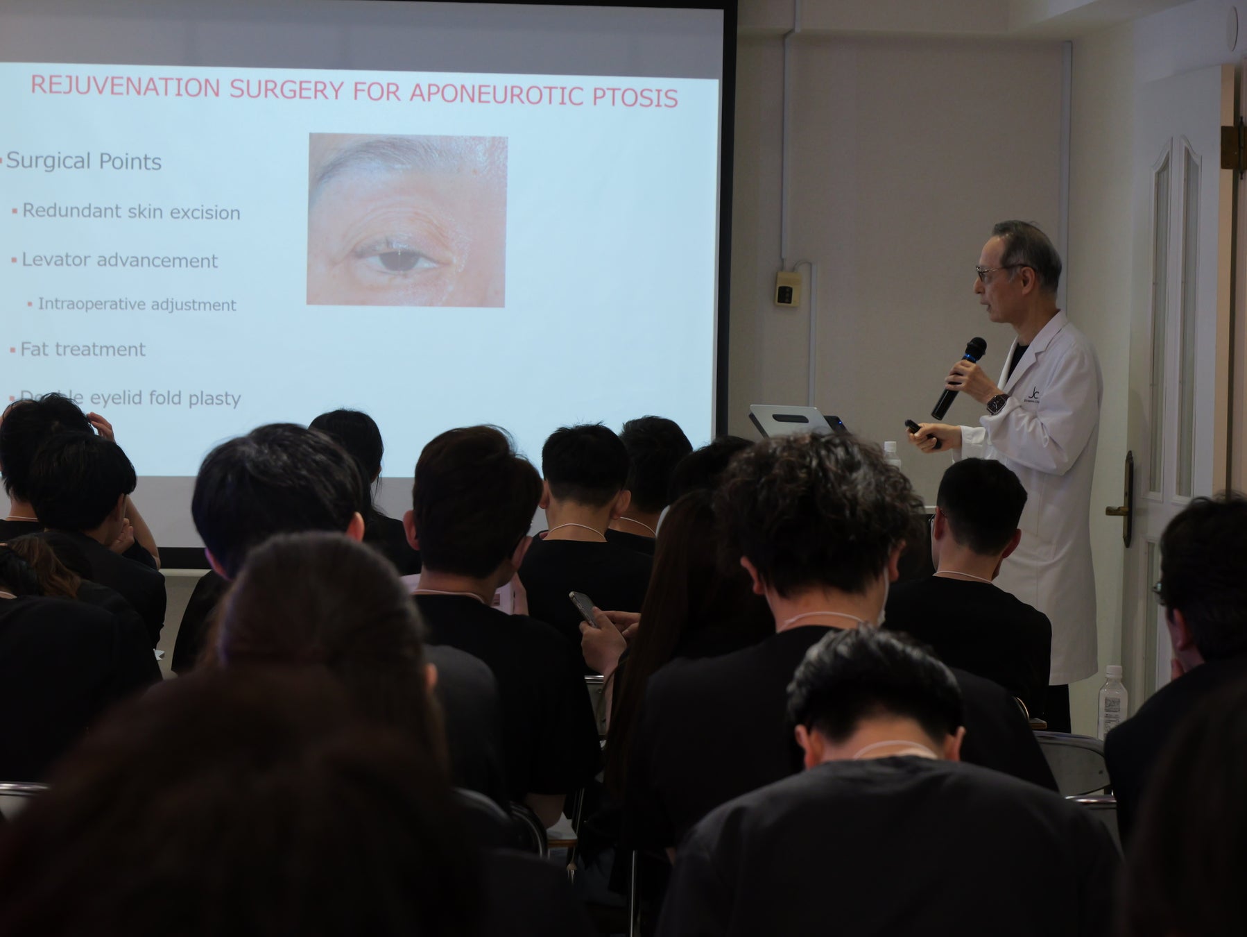 ・帝京大学医学部形成口腔顎顔面外科講座 教授 小室裕造医師による下まぶたの治療技術に関する学術的講義