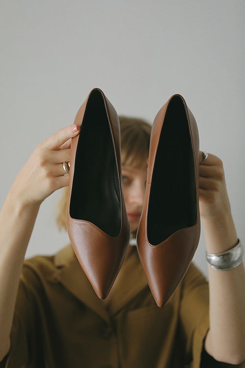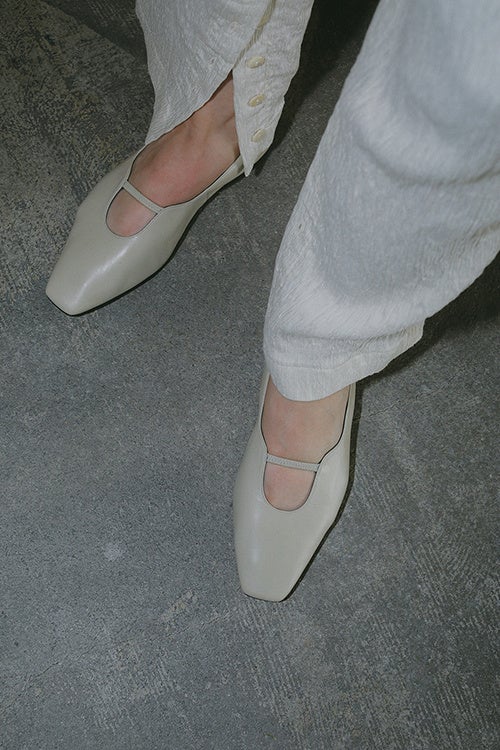 PELLICO SUNNYの木型をベースに、MANOFらしいカットアウトディテールを施したフラットパンプス。素材はPELLICO SUNNYでも定番素材で使用されているNAPPA(山羊革)。柔らかな履き心地のフラットシューズで長時間歩いても疲れずデイリー使いにもおすすめな一足。