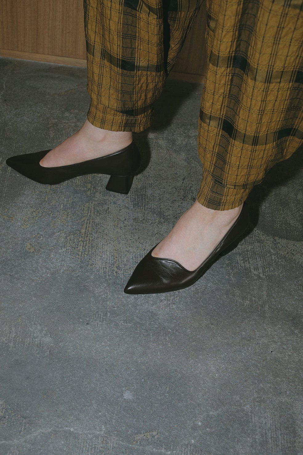 PELLICO SUNNYの木型をベースに、女性らしい滑らかな曲線のカッティングを施したヒールパンプス。女性らしく脚を長く綺麗に見せてくれるデザイン。素材はPELLICO SUNNYでも定番素材で使用されているNAPPA(山羊革)。太くて安定感のあるヒールで歩きやすくベーシックながら履き口のディテールがMANOFらしい柔らかい印象に。