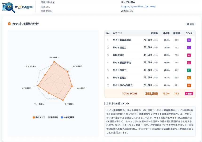 無料なのに『有料診断レベル』を超える——『新・77's Check!!』提供開始自社ホームページだけでなく、『制作会社のレベル』まで77項目で可視化