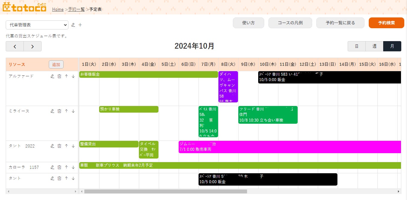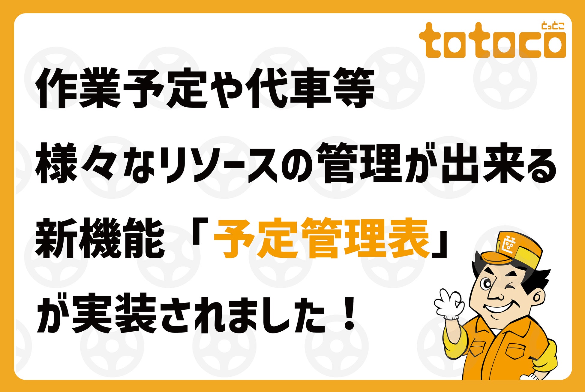 「totoco(とっとこ)」車検ネット予約管理サービスに新機能「予定管理表」追加のお知らせ