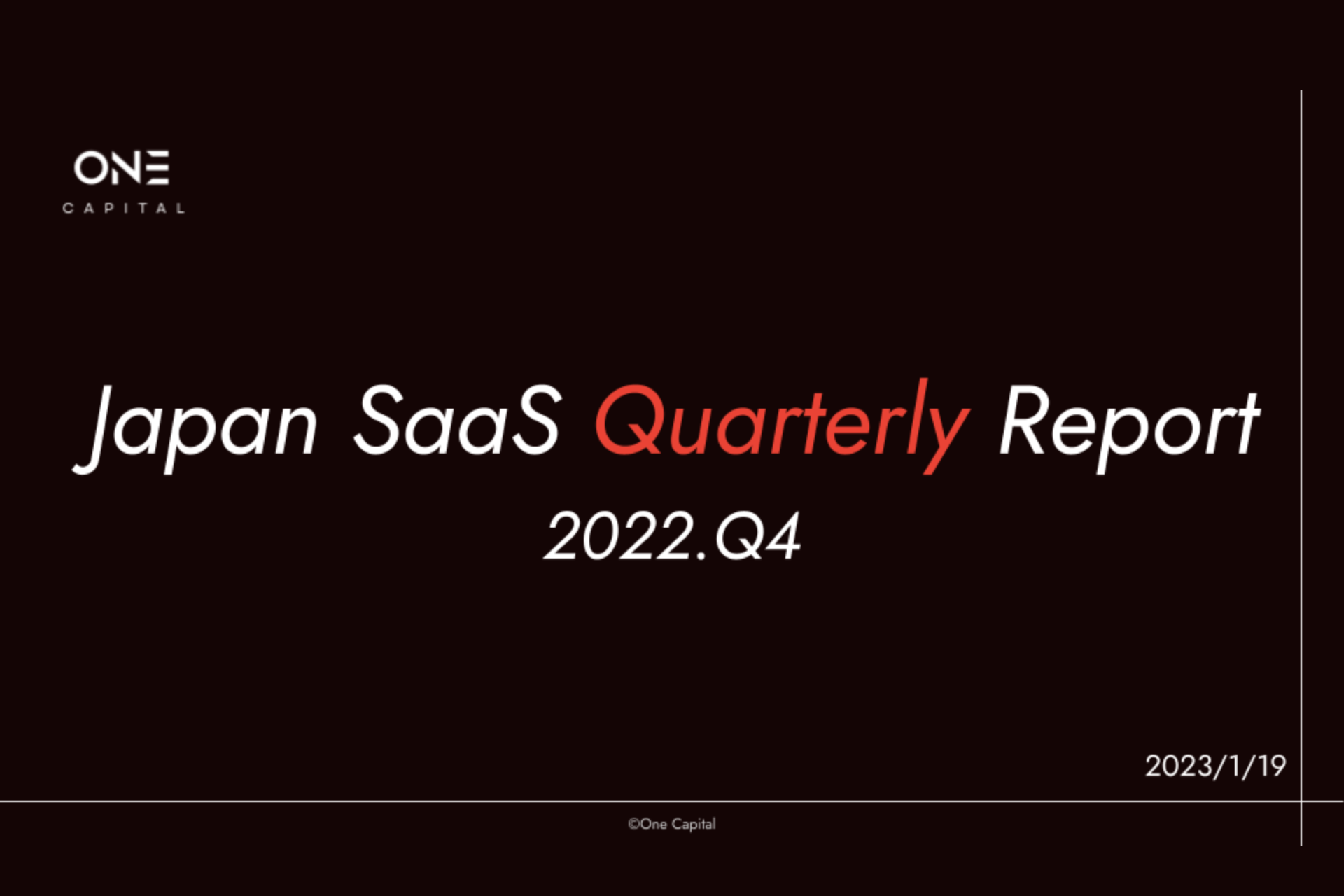 SaaSスタートアップへの投資を手掛けるOne Capitalでは、国内SaaS市場におけるトレンドを四半期毎にまとめたレポート「Japan SaaS Quarterly Report」を発刊しています。この度、2022年第4四半期(10月〜12月)に関するレポートを作成しましたので、公開いたします。