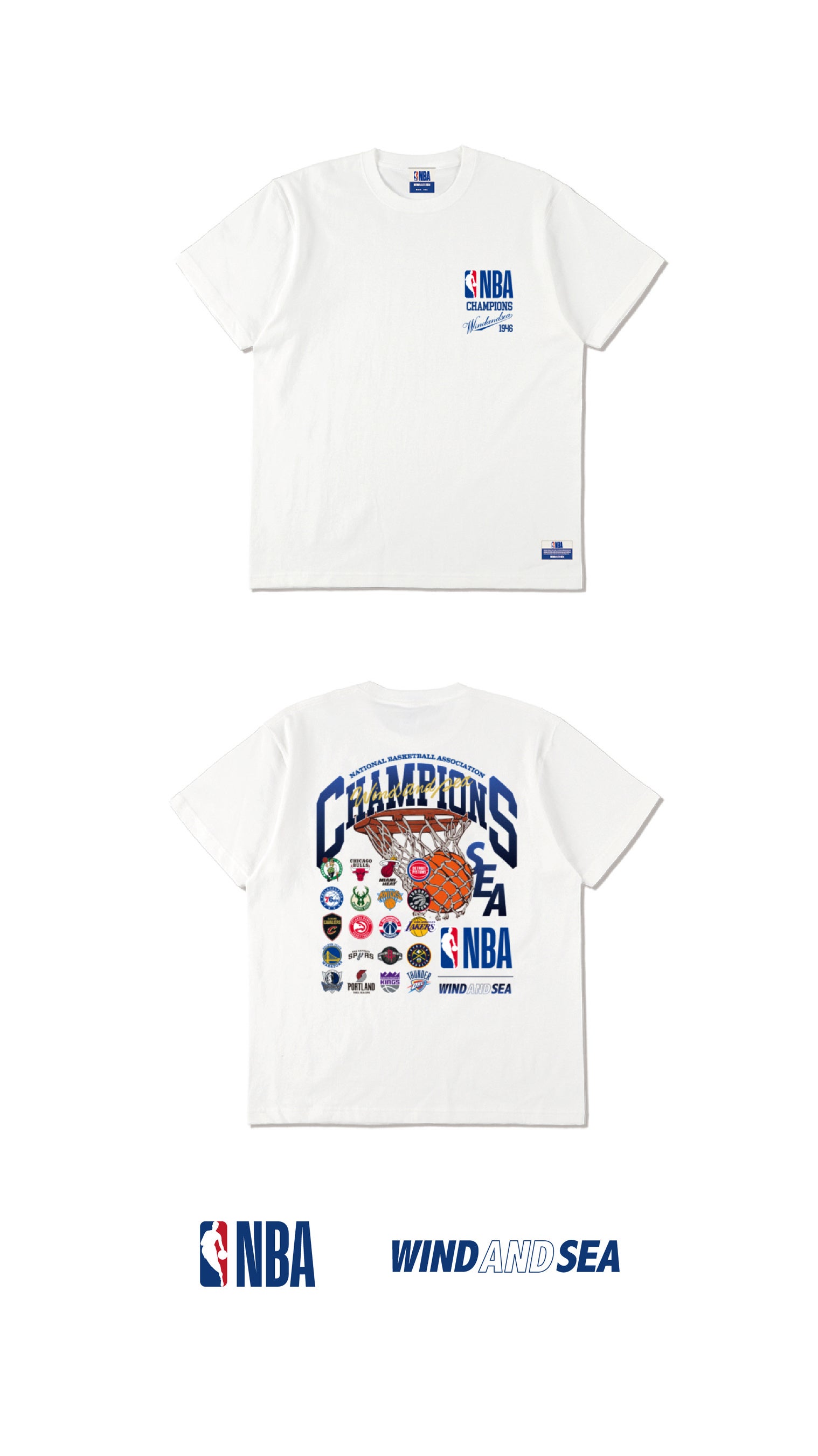 NEW ERA®のRetro Crown 59FIFTY®をベースに刺繍デザインが目を惹く6パネルCAPは特別な一点に加え、NBAとWIND AND SEAによる、それぞれのチームを色濃く表現した圧巻のTシャツラインアップも本コレクションに彩を加えます。