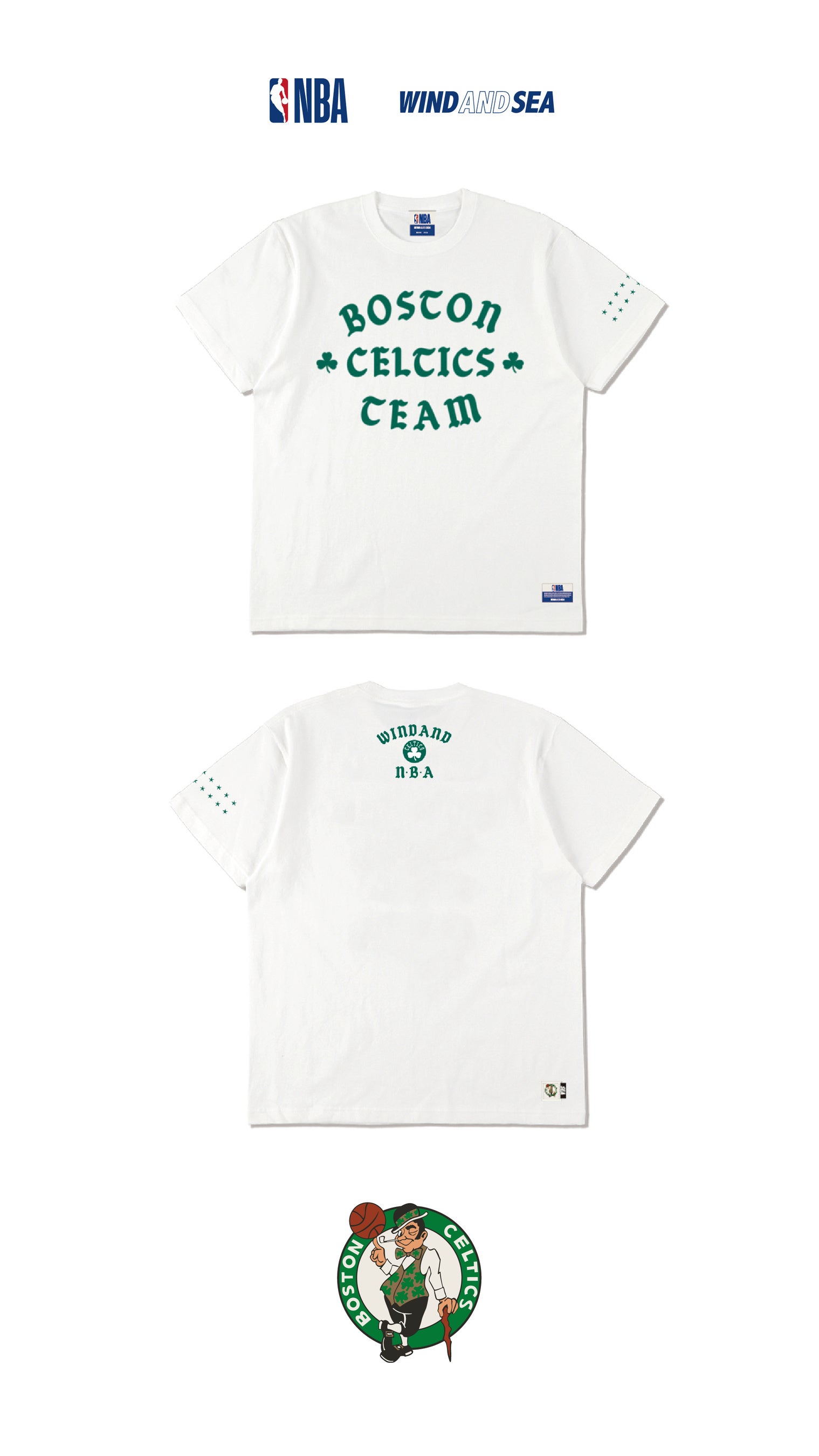 “CHAMPIONS”をテーマにしたコレクションデザインでは、イーストとウェストの歴代優勝チームに焦点を当てたチームエンブレムのデザインを筆頭に、パリを拠点とするレタリングアーティストTyrsa Studioが手掛けたWIND AND SEAのカリグラフィーロゴがプラスされアクセントに。
