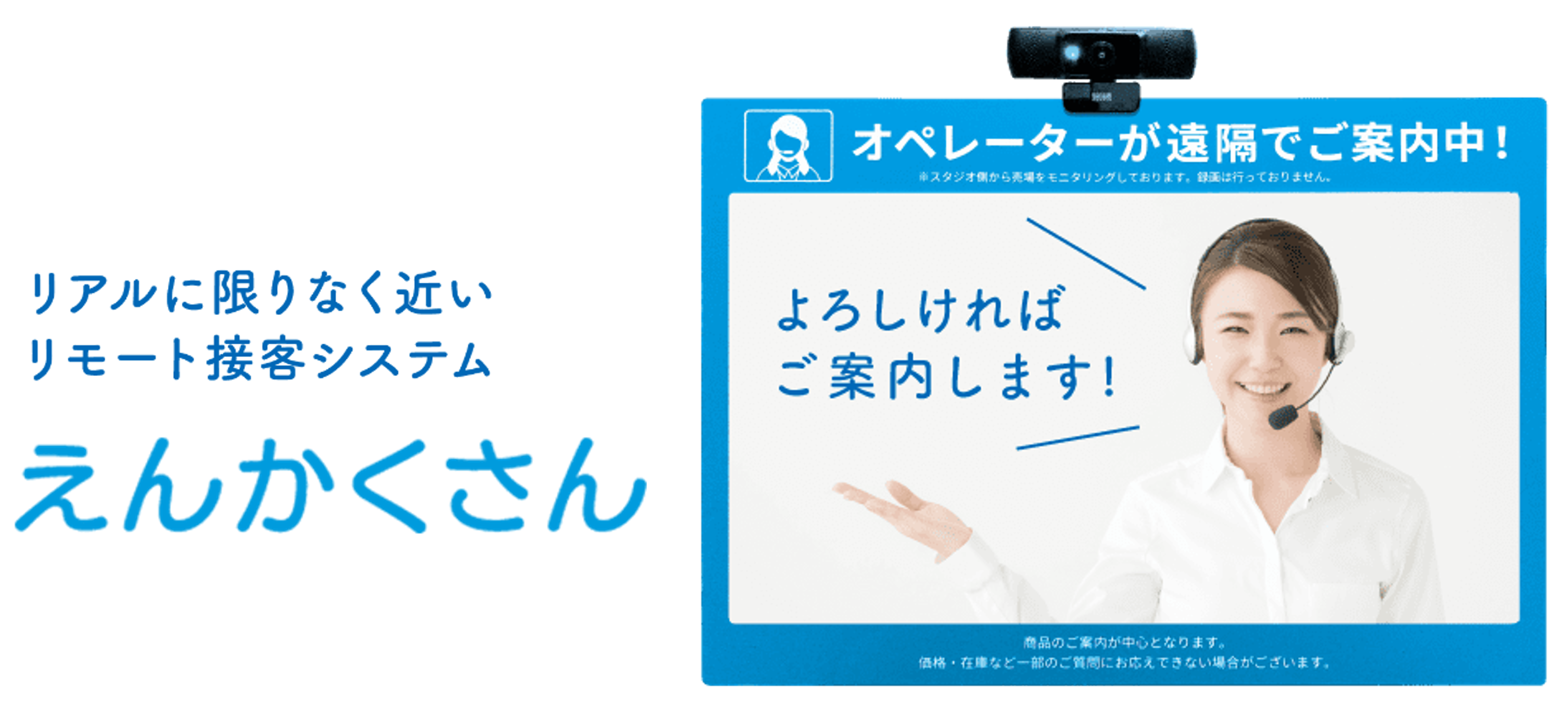 本実証実験にはビーツのリモート接客システム「えんかくさん」とデジタル集客アトラクション「キャッチゲームズ」(※一部店舗のみ)を組み合わせて実施しました。以下、該当2システムをご紹介致します。
