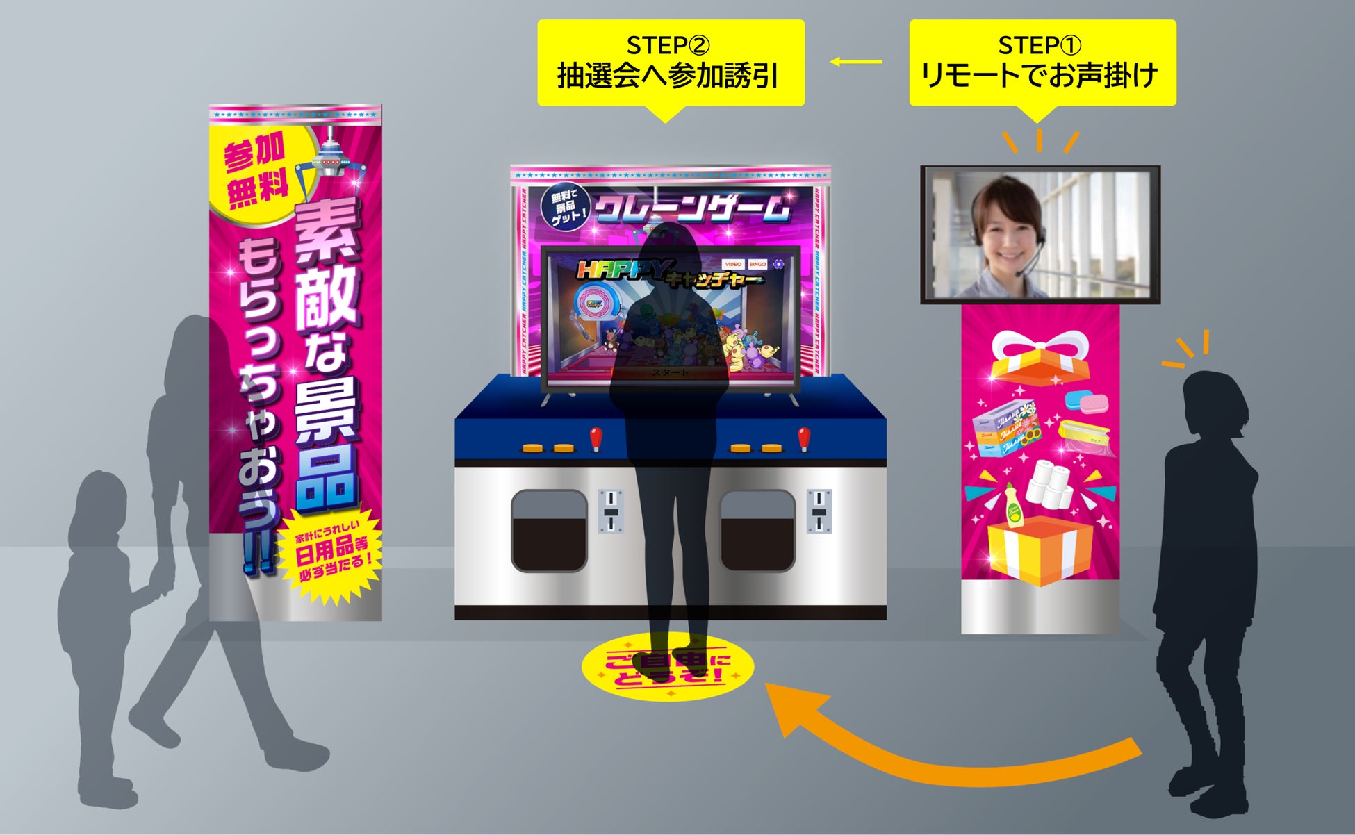 イベントブースの中では、デジタルクレーンゲーム等のゲームに誘導、ゲームの結果に応じて景品を店内スタッフより配布します。