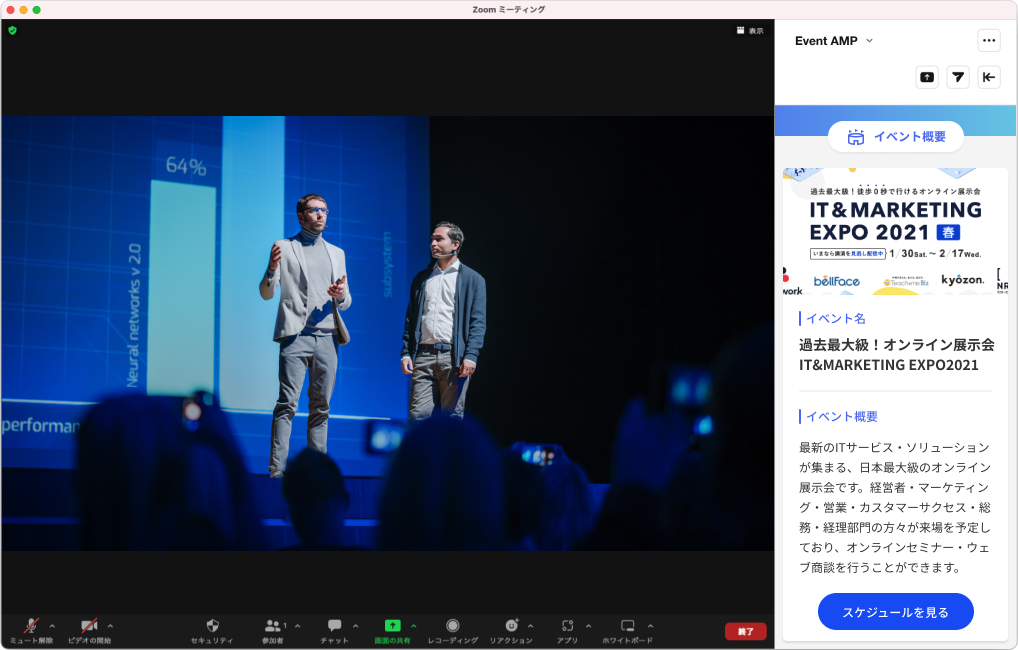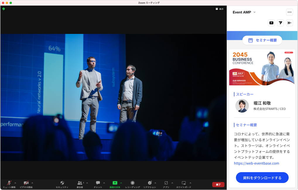 EventAMPは、Zoomの公式アドオン(Zoom Apps)を通じて、Zoomでのイベント体験をより拡張するサービスを日本で初めて公開※します。