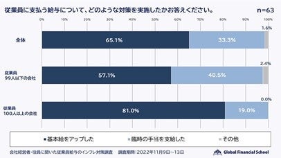 インフレ対策「実施済み」の会社の65.1%は「基本給アップ」で実施
