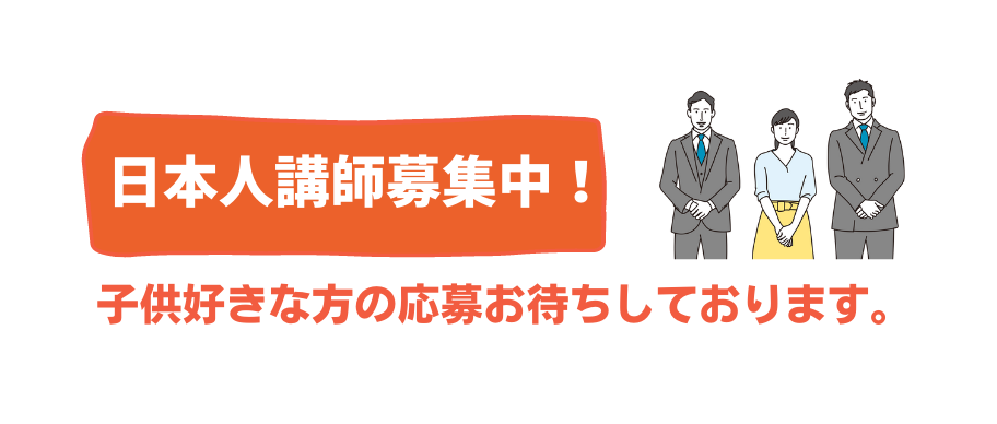 また、本サービス提供のため、日本人講師の募集をしております。子供好きな方の応募をお待ちしております。