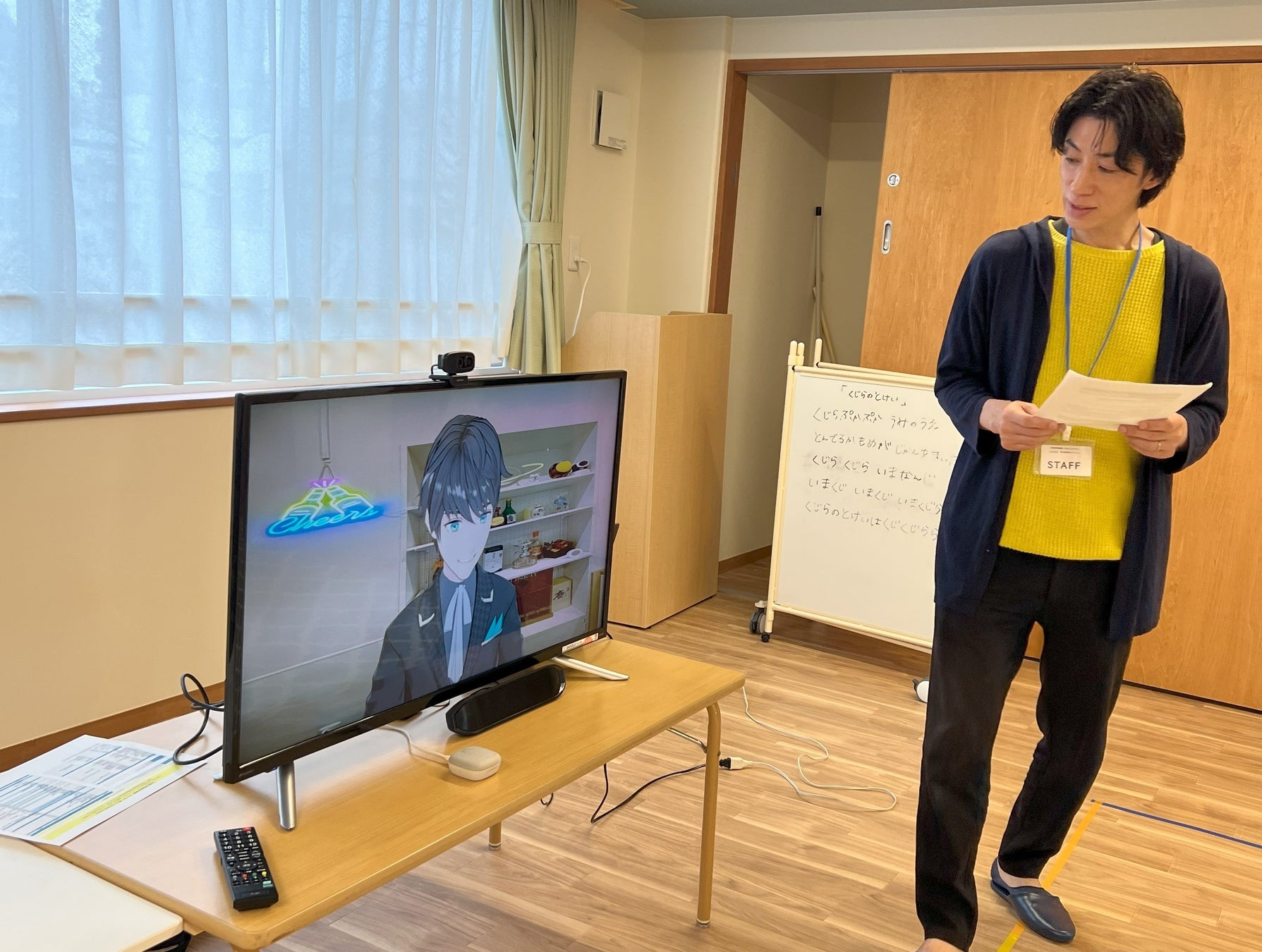 その後、株式会社ALiENによる、出張アバター菓フェ『アバターと時間のおはなしをしよう』では、実際にお店で働いているアバターが保育園に登場し、画面越しに園児とじゃんけんなどの手遊びをしたり、おやつの時間についてのお話などをして盛り上がりました。
