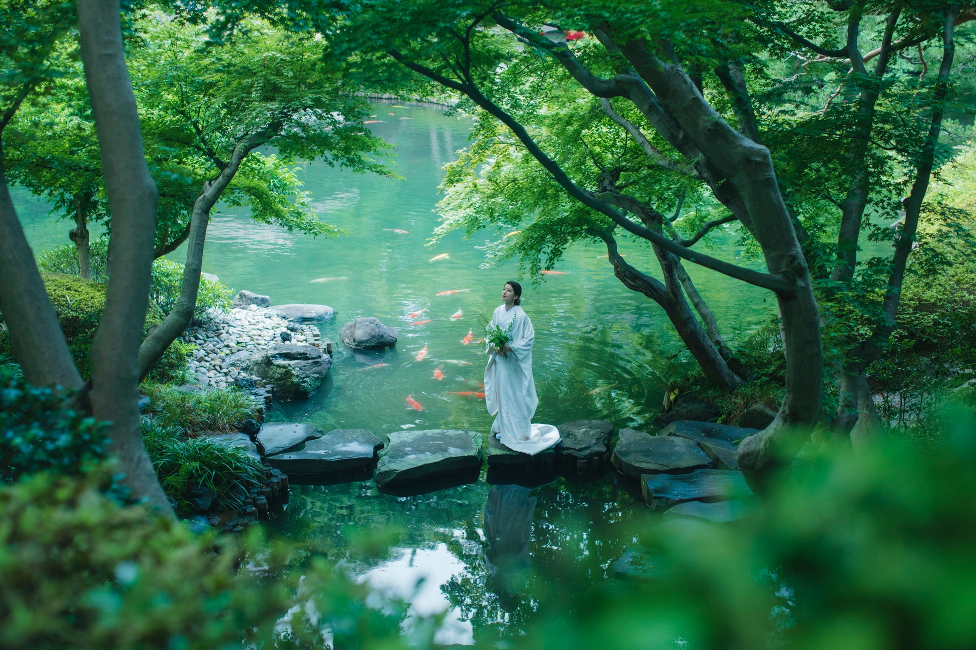 こころをつなぐ。HAPPO-EN WEDDING PRODUCE 自然あふれる約1万坪の日本庭園に幸せが満ちる 庭園・建築・食・美術・音楽など、日本文化の数々を自分たちの礎として、ひと組ひと組の結婚式をつくりだす八芳園。 世界中の人々を魅了する日本庭園や、旬の食材を活かし、おふたりの背景を取り入れたおもてなし料理で、大切なひとときを。