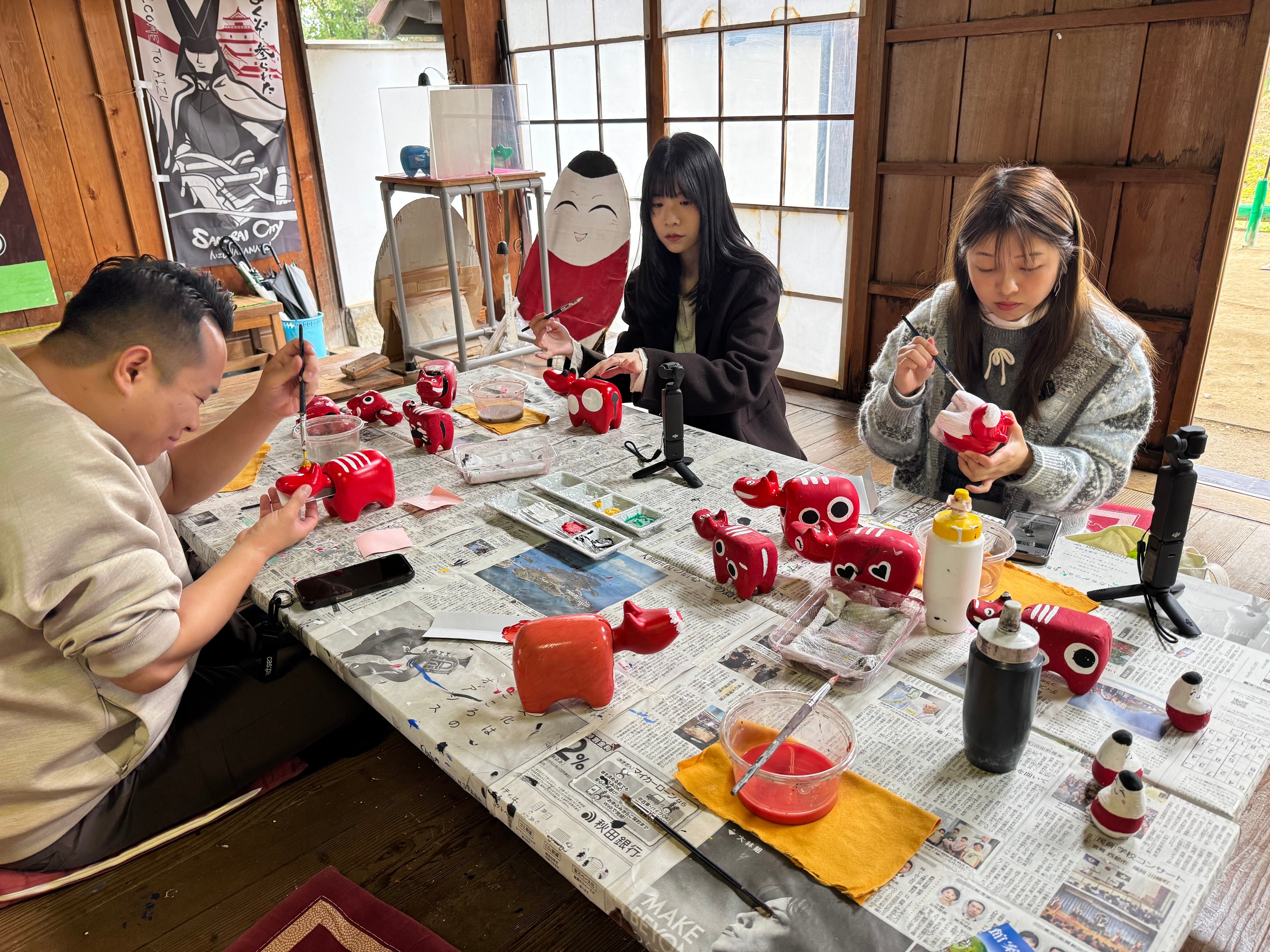 最終日は「会津藩校日新館」を訪れ、伝統工芸「赤べこ絵付け体験」に挑戦。職人の指導のもと、思い思いのデザインでオリジナルの赤べこを完成させました。その後は「そば打ち体験」を通して、会津の食文化に触れ、地元の味を自らの手で楽しむひとときを過ごしました!