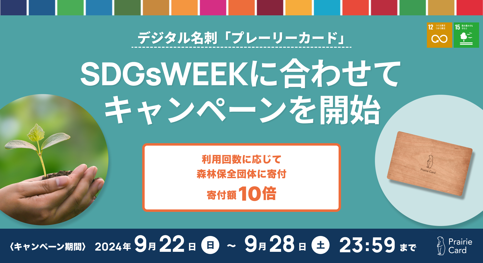デジタル名刺「プレーリーカード」を提供する株式会社スタジオプレーリー(本社:東京都渋谷区 共同代表:片山大地・坂木茜音)は、2024年9月22日〜9月28日に世界中で実施される「SDGsWEEK」へのアクションとして、プレーリーカード利用者が誰でも参加できる「グリーンドネーションプログラム」の寄付額を10倍に。これにより、私たちは事業活動を通じてさらなる環境保護へのアクションを推進してまいります。