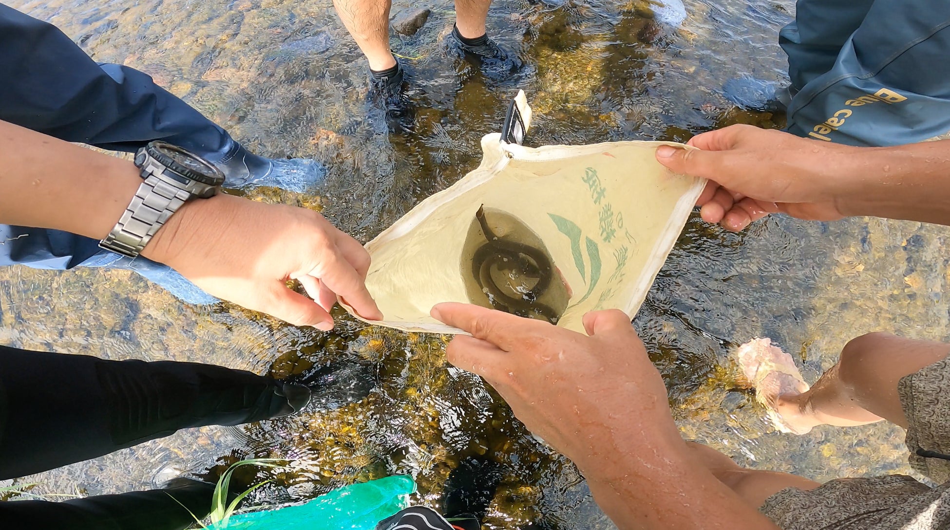 襷屋の野遊びの達人が指導する、天然うなぎ漁体験は本ツアーの大きな魅力。