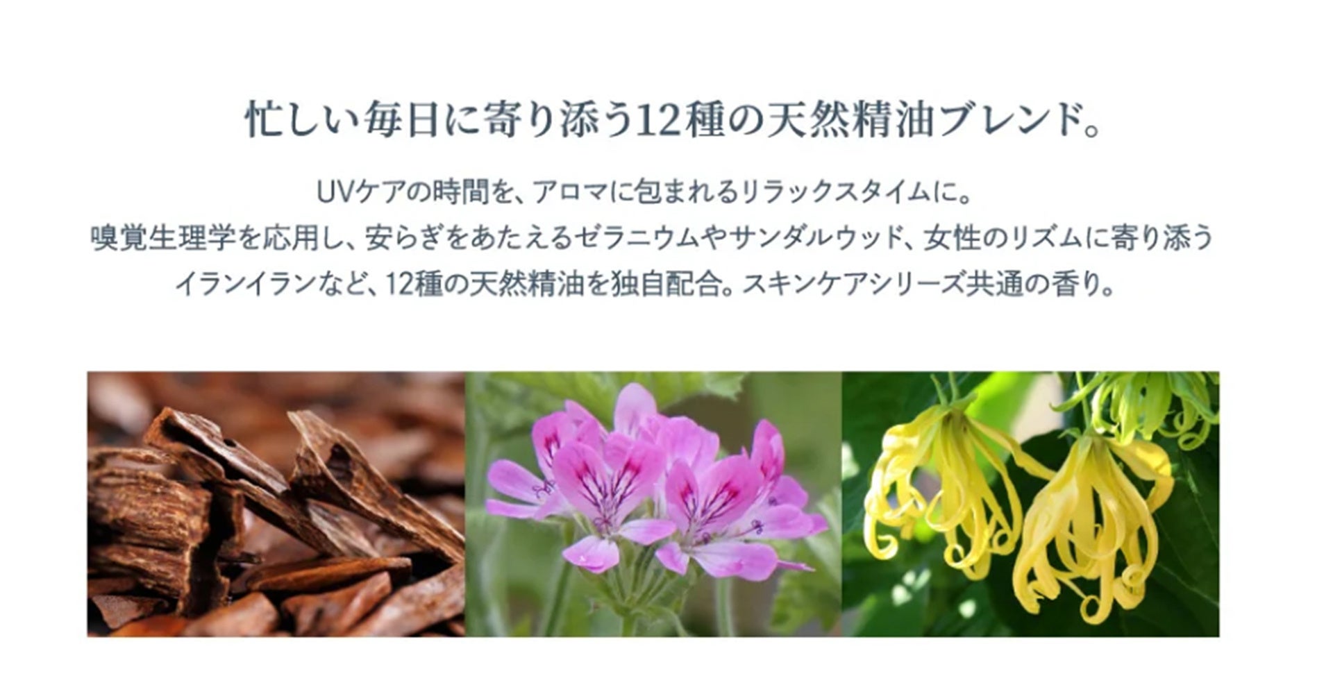 忙しい毎日に寄り添う、12種の天然精油をブレンド。スキンケアシリーズ共通の香り。
