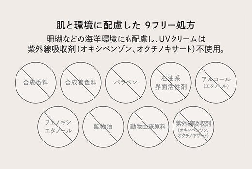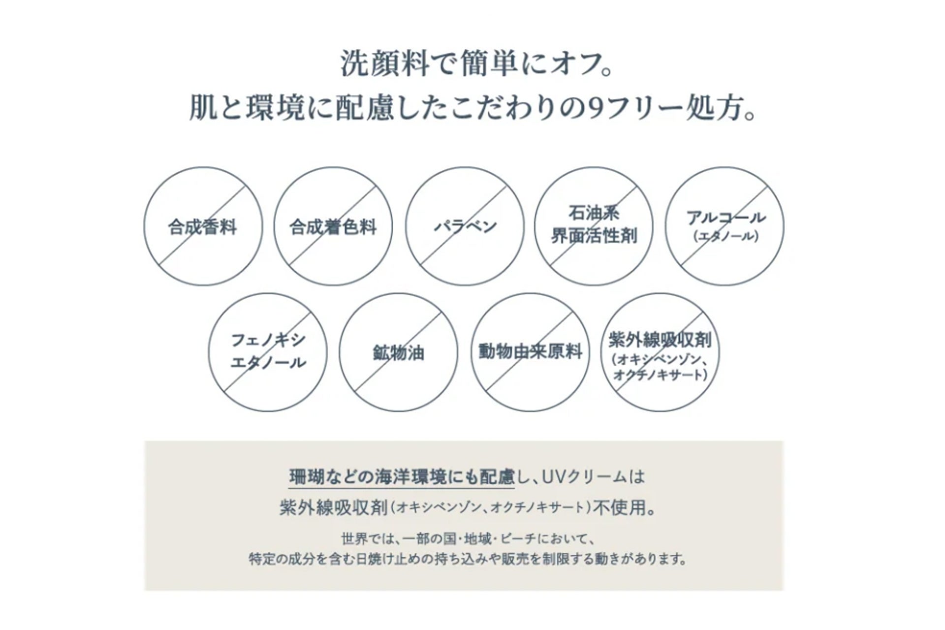 紫外線やブルーライト、乾燥などの外的刺激から肌を守るノンケミカル処方(紫外線吸収剤不使用)。
