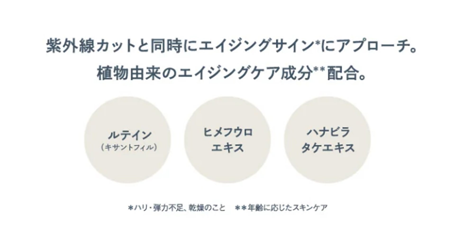 **年齢に応じたスキンケア成分のこと。ルテイン(キサントフィル)ヒメフウロエキス、ハナビラタケエキス