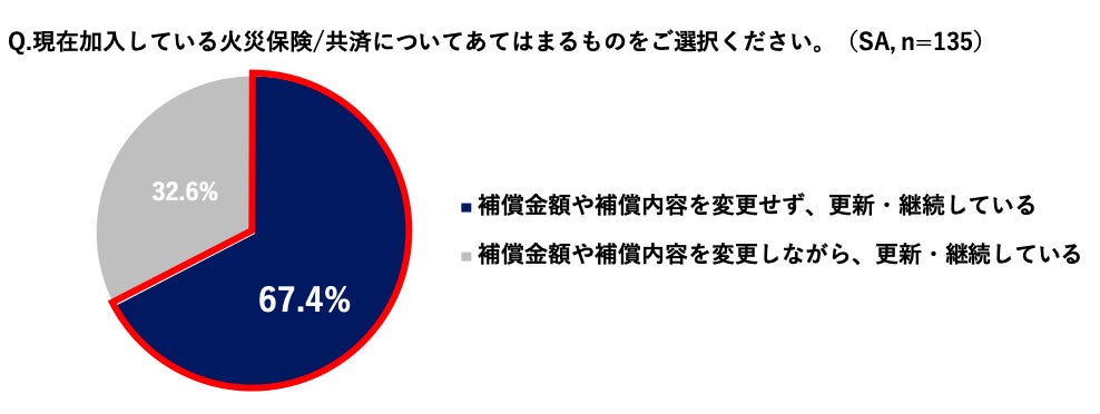 戸建てで火災保険を保険会社を変えずに更新した人のうち、 3人に2人(67.4%)は価格比較や見直しを行っていないことがわかった。