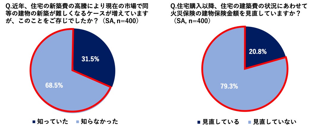 ソニー損害保険株式会社(代表取締役社⻑:丹羽 淳雄、本社:東京都大田区、以下「ソニー損保」)では、近年の建築費や原材料費の高騰の影響で戸建ての建築費が高騰していることを受けて、戸建てで火災保険を契約している全国400人を対象にした実態調査を行いました。